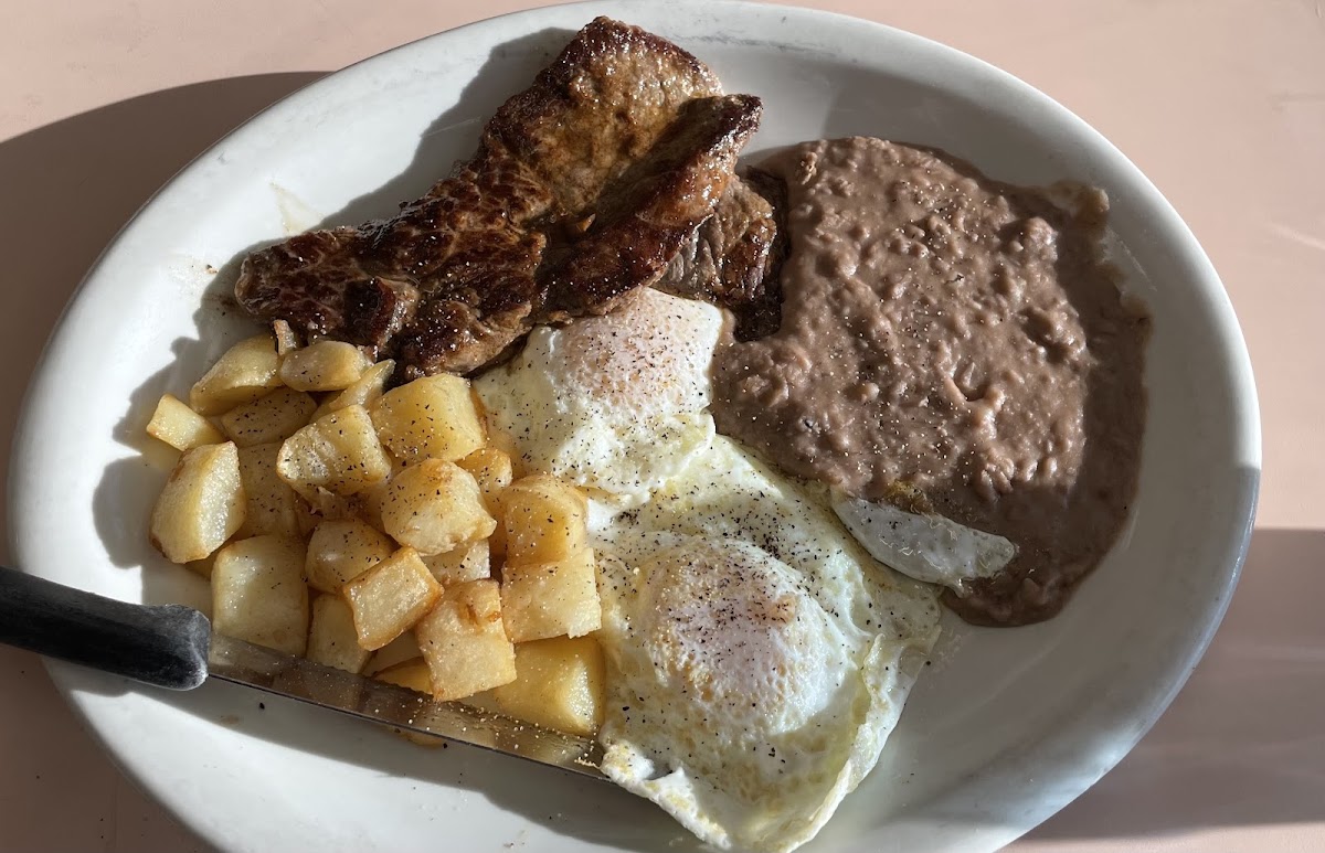 Decent no frills Mexican food. We went for breakfast. I did ask for a side of avocado and they said they didn’t have any. I got a side of guacamole and it was just mashed up avocado. The tortillas were wonderful and the tacos were big. My dad enjoyed the bean and cheese tacos, my sister had a tostada, I had a couple eggs, sausage and potatoes. My husband had the pancakes and he liked them. You can get out of there without paying an arm and a leg which is nice these days.